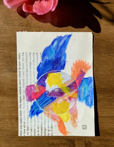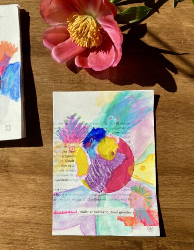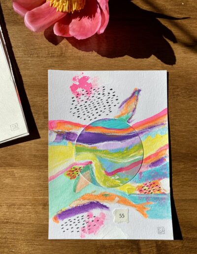 Diese 13×18 cm grossen Originale sind Teil der Neon-Serie. Sie sind auf Papier gemalt, mit Acrylfarben, Acryltinten und wasservermalbaren Wachspastellen.